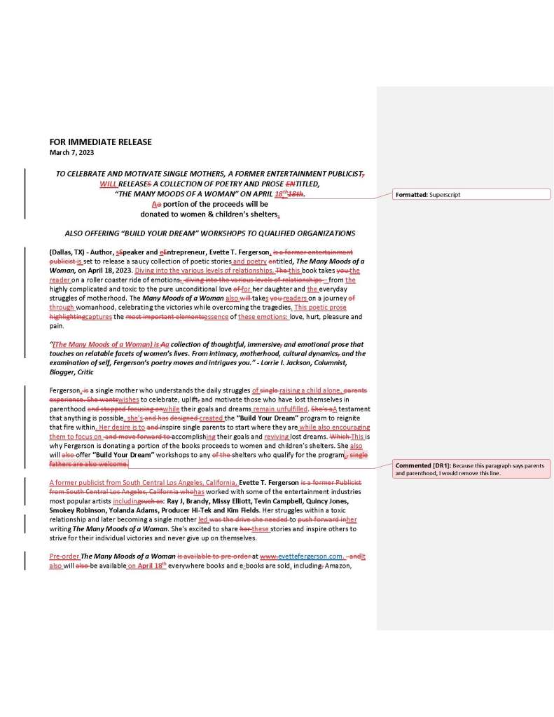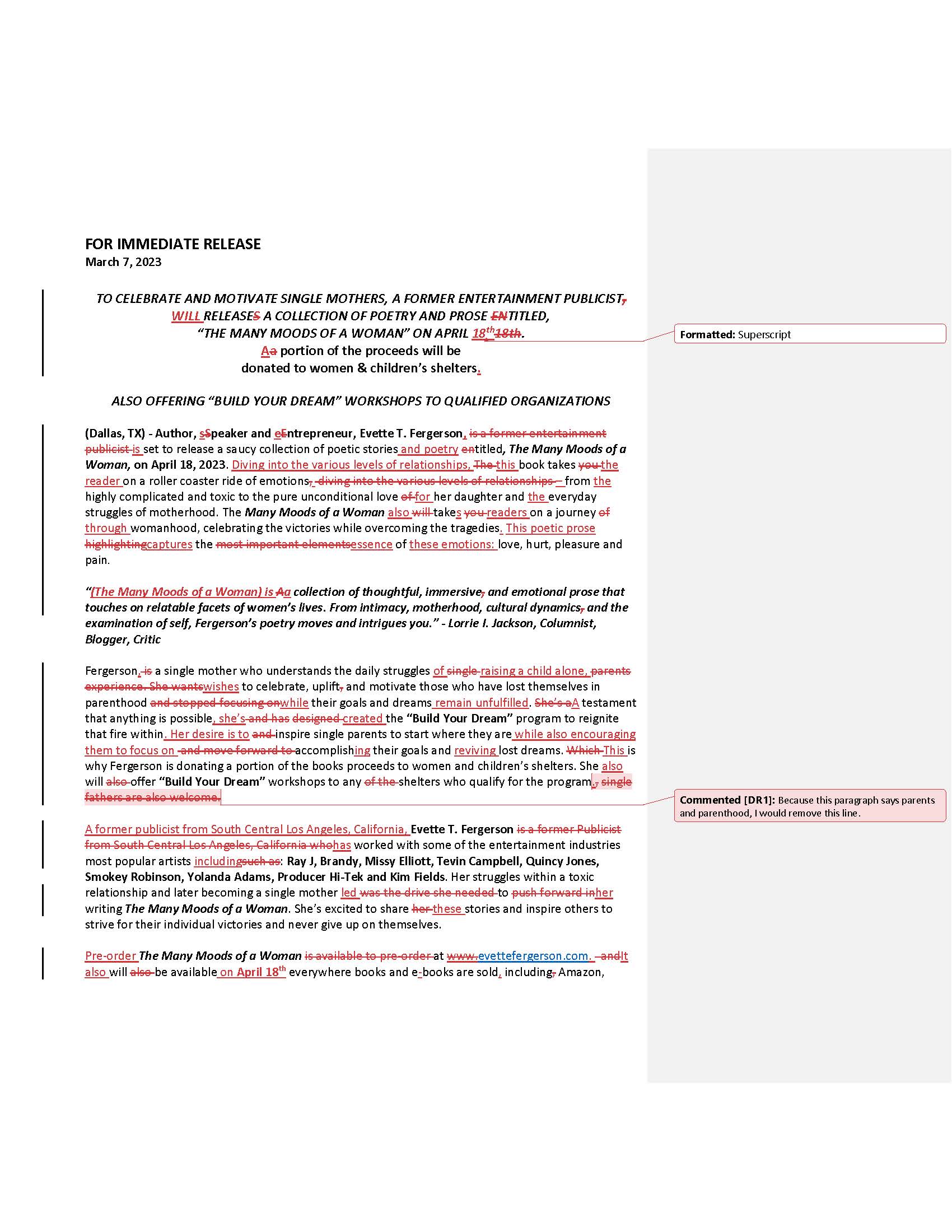 Developmental edits to the published book Dirty Sidewalks & Beautiful People (renamed from The Tenderloin Quote of the Day) by author Esker-D Ligon.